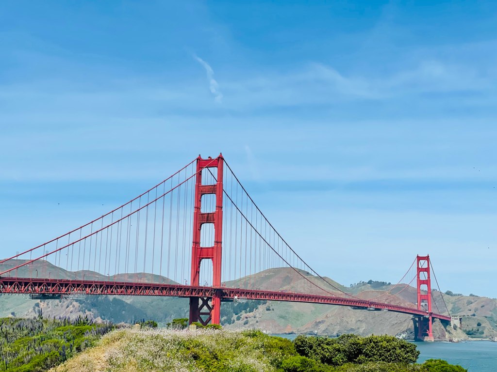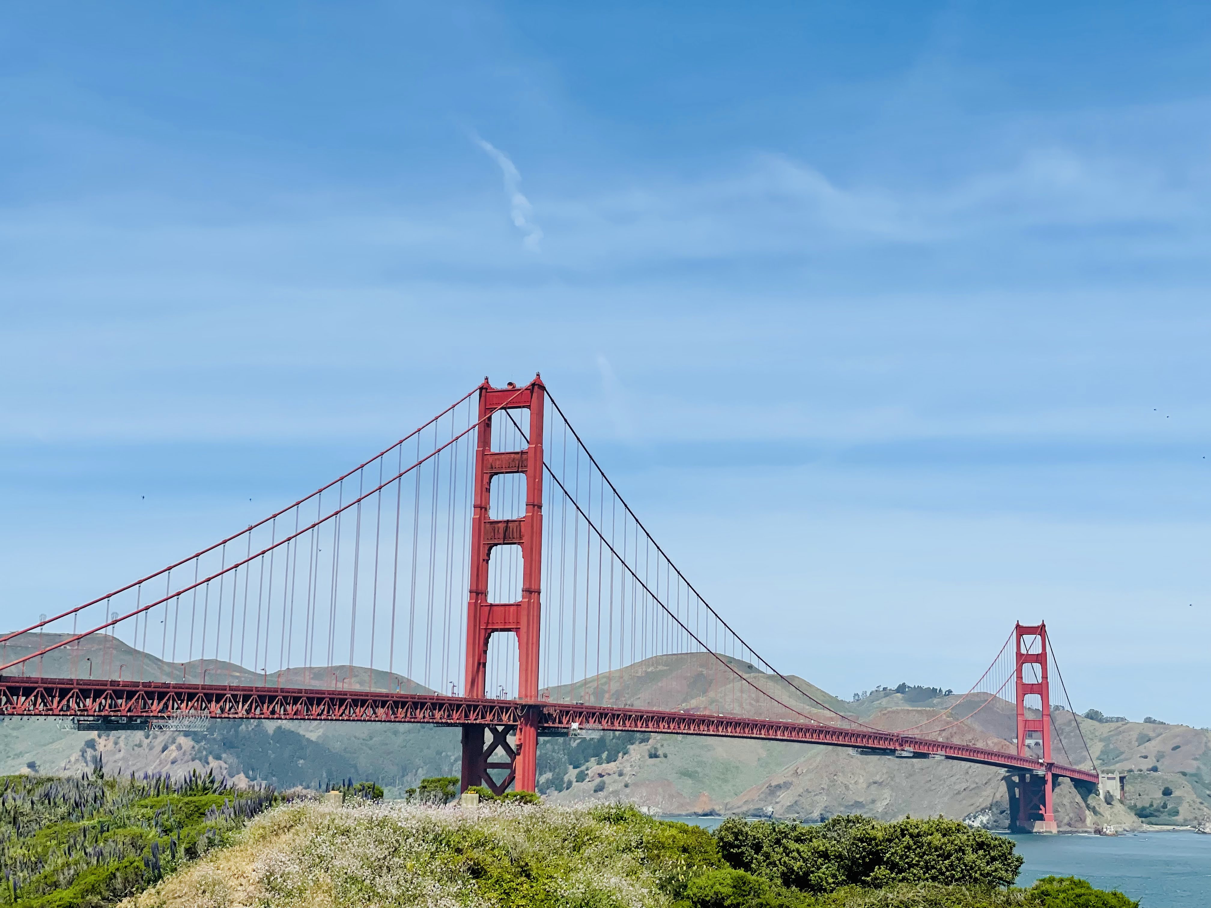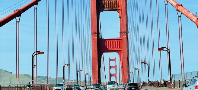 The scarlet red, or should I say fiery orange-red or accidental “International Orange” colored bridge,