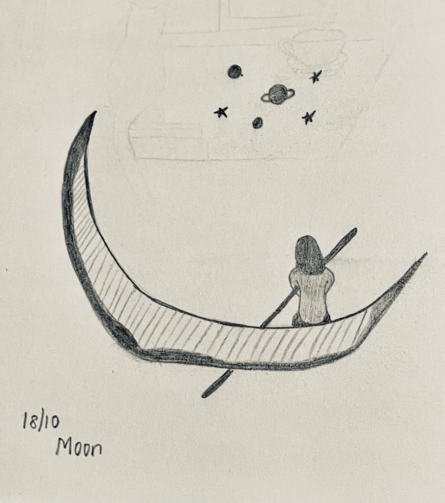 She used the moon as her boat to sail through the darkness of the Milky Way.